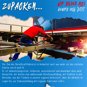 Aktuell haben wir auf Facebook und Instagram eine Anzeigenkampagne für Bewerber als Berufskraftfahrer/-in laufen.
