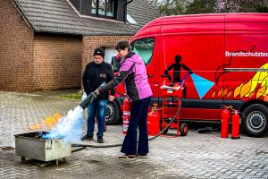 Auch bei der diesjährigen Brandschutzschulung wurde wieder das Löschen bzw. der reale Umgang mit den verschiedenen Feuerlöschern geübt.